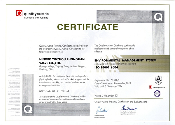 中天通過ISO 14001:2004環(huán)境管理體系認證